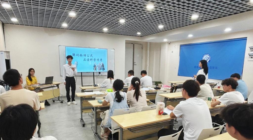 6月27日下午,伟德betvlctor1946源于英国物理与电子科学学院在敏行轩四栋一站式学生社区开展“解码物理公式,品读科学传奇”主题宣讲比赛。六位宣讲员以通过抽签抽取的物理公式为主题,解读物理公式背后的故事,以声线为笔、情感为墨,在沉浸式的宣讲画卷中,为现场学子展开了一场跨越时空的物理探索之旅,让科学精神的星火播撒在青春舞台上。