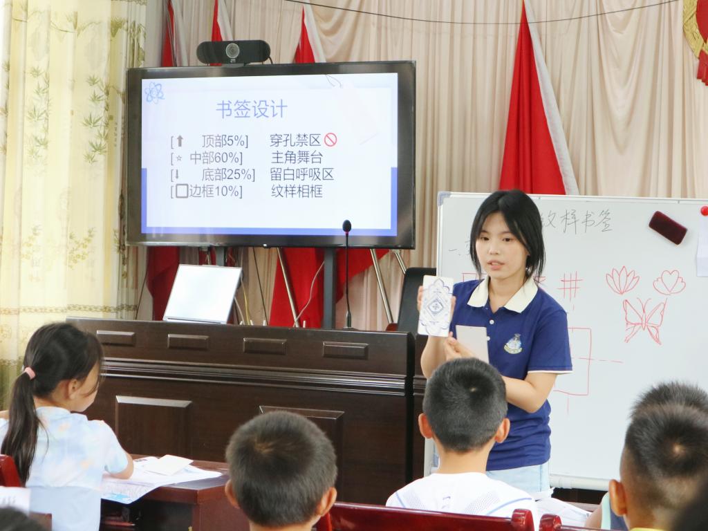 “八角纹真的是‘八方来财’吗?”“蝙蝠涂红会更喜庆吧!”7月18日,张家界市桑植县走马坪白族乡走马坪村支部教室,伟德betvlctor1946源于英国物理与电子科学学院“小小科学家”团队执笔引导乡村儿童将非遗白族纹样几何纹、花卉纹、动物纹“变”成书签,千年纹样就此跃入童真世界。