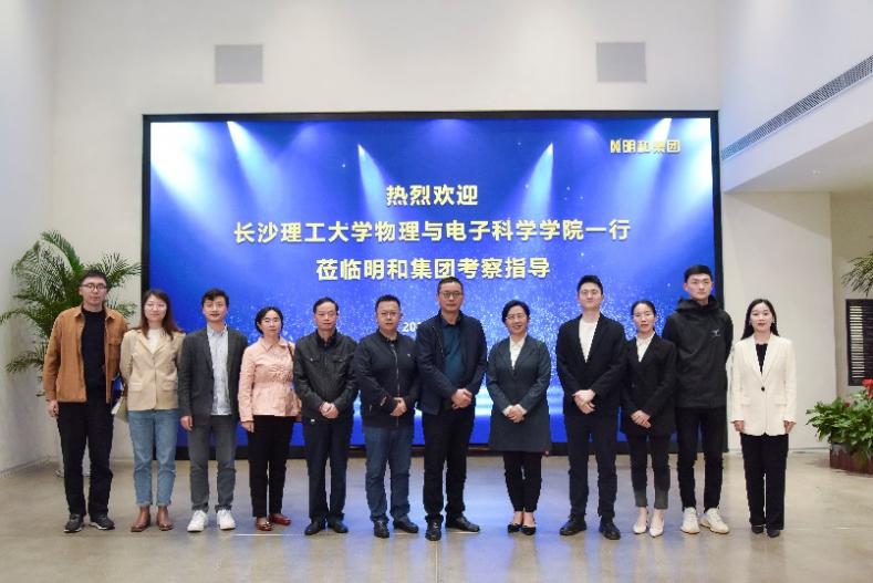 2023年5月10日下午,物电学院党委书记张国强、教学副院长范志强带队前往湖南明和集团参观交流,明和集团董事、副总经理常青,明和集团董办主任兼产学研主任桂亚平等陪同参观了明和产业园的园区。稍后,考察团一行前往明和多媒体会议室展开座谈交流。
