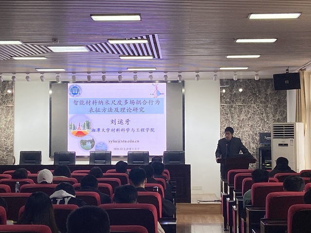 为加强学生们对智能材料领域发展现状及趋势的了解,12月14日15:00,物电学院博力学术论坛之智能材料纳米尺度多场耦合行为表征方法及理论研究专题讲座在理科楼B413举行。本次讲座由湘潭大学材料科学与工程学院刘运牙教授主讲,物电学院副院长张卫兵主持。