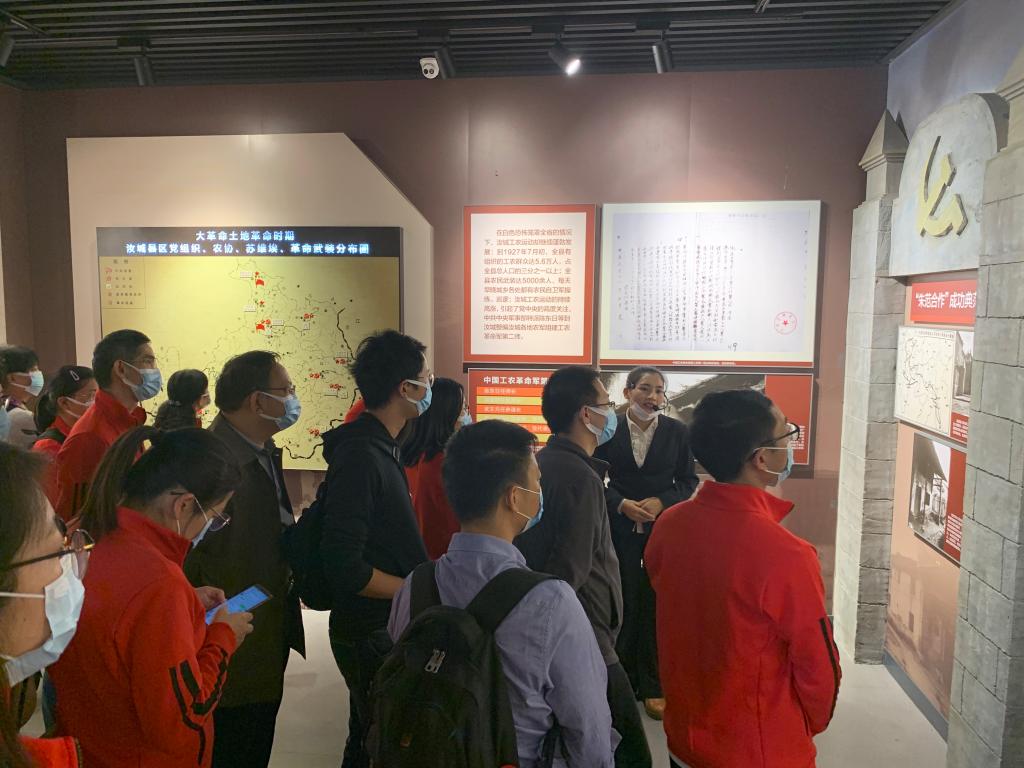 第二天,全体成员又怀着虔诚与敬仰之心来到了湘南起义纪念馆,听取了湘南起义主题党课,并参观了五个主题展厅——“浴血重生朱德率部奔湘南”、“风展赤帜百万之众斗敌顽”、“波澜壮阔创建苏维埃政权”、“战略转移湘南义军赴井冈”、“千秋史册伟绩闪耀功勋榜”,观看橱窗中革命先烈使用过的武器和宣传图片,详细了解湘南起义的历史过程。