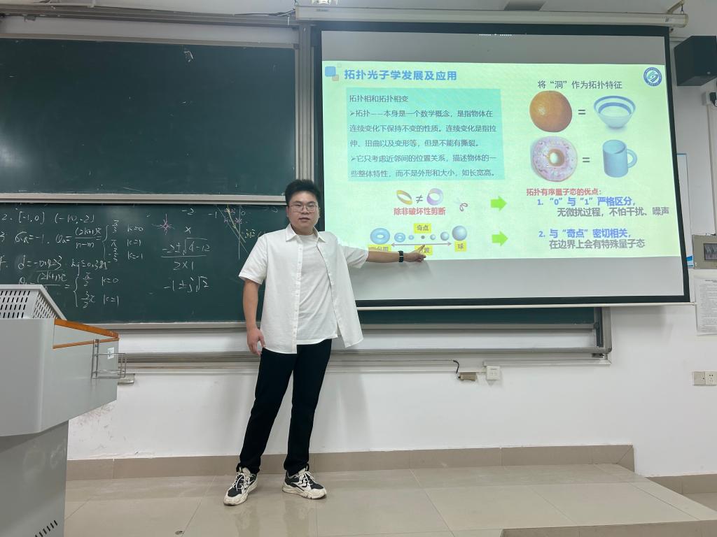 听完之后,同学们都感受到胡博士在这个领域浓厚的知识底蕴,大家激情澎湃,自发响起阵阵热烈掌声。在提问答疑环节,大家依次提出了自己的疑惑,胡博士也耐心的为大家一一解答,加深大家对本次讲座知识的理解。这次讲座激发了同学们对拓扑光子学的兴趣,同时大家也学习到了丰富的知识,开拓了视野。