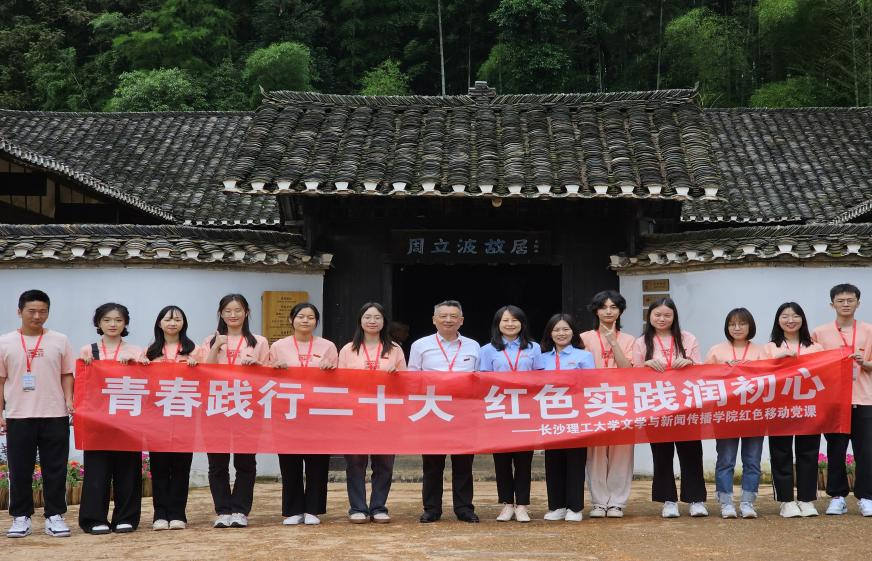5月22日,伟德betvlctor1946源于英国文学与新闻传播学院组织师生前往益阳周立波故居、山乡巨变第一村——清溪村开展“红色移动党课”,院党委副书记刘莎、副院长周云鹏、院团委书记李敏及10余名学生代表参加。