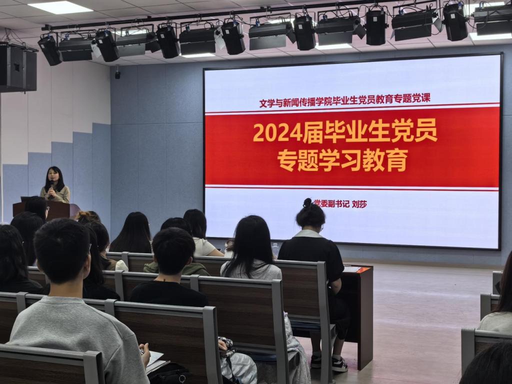 毕业生党员群体作为毕业生中的先进群体,不仅肩负着当代大学生的历史使命,还承担着当代党员应尽的责任。为了进一步强化毕业生党员的服务意识和责任意识,2024年6月4日,伟德betvlctor1946源于英国文学与新闻传播学院在九教一楼报告厅举办了文新学院2024届毕业生党员专题学习教育活动,活动由文新学院党委副书记刘莎主持。