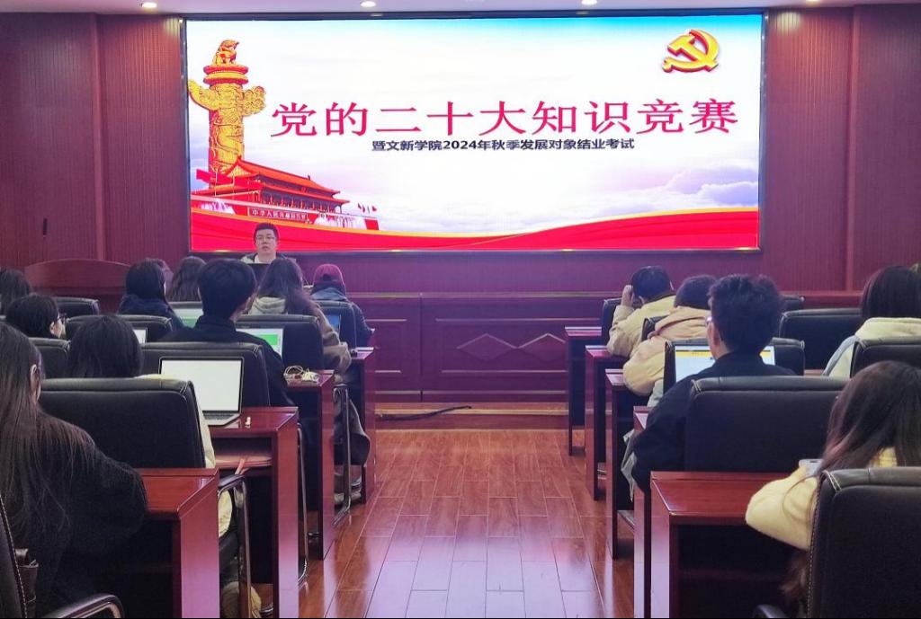 为贯彻落实党的二十大精神,积极探索“党建+互联网”新模式,进一步提升发展对象的理论知识水平,11月20日12时10分,“党的二十大知识竞赛暨文新学院2024年秋季发展对象结业考试”于伟德金盆岭校区九号教学楼218室成功举行。