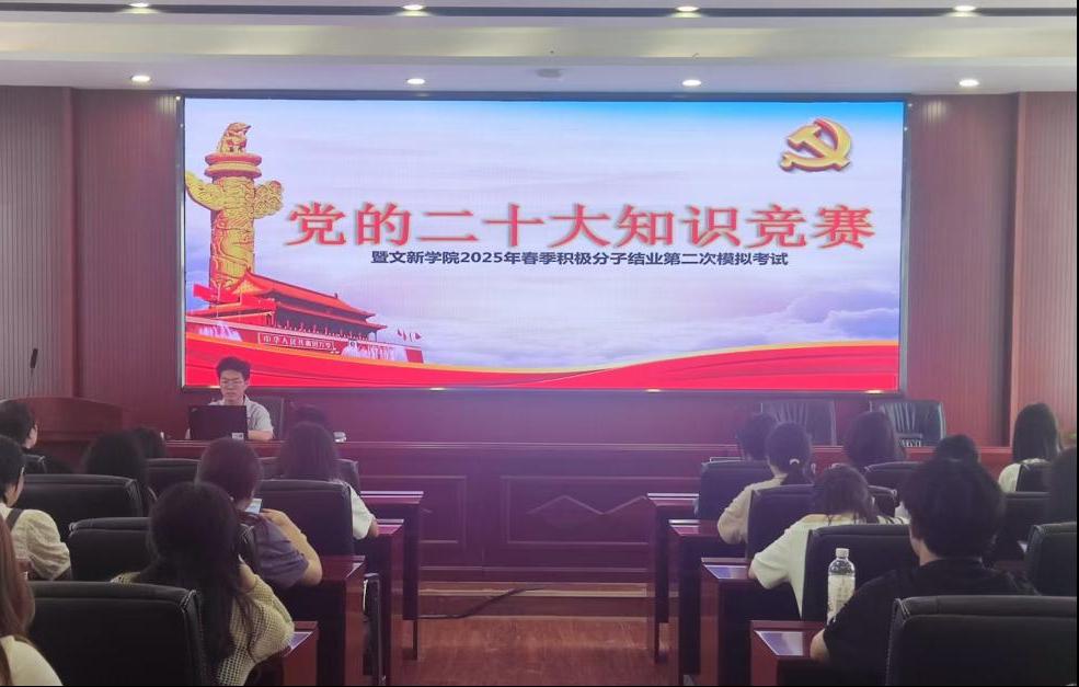 为贯彻落实党的二十大精神,积极探索“党建+互联网”新模式,进一步提升积极分子的理论知识水平,5月19日12时10分,“党的二十大知识竞赛暨文新学院2025年春季积极分子第二次模拟考试”于伟德金盆岭校区九号教学楼218、223室成功举行。