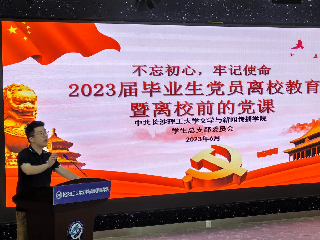 为深入贯彻党的二十大精神,充分发挥毕业生党员先锋模范作用,提升毕业生党员党性修养,6月11日,“青春践行二十大,强国有我新征程”——文新学院2023届毕业生党员教育大会在文科楼B300举行,学生党总支副书记陈鑫宇主持会议。