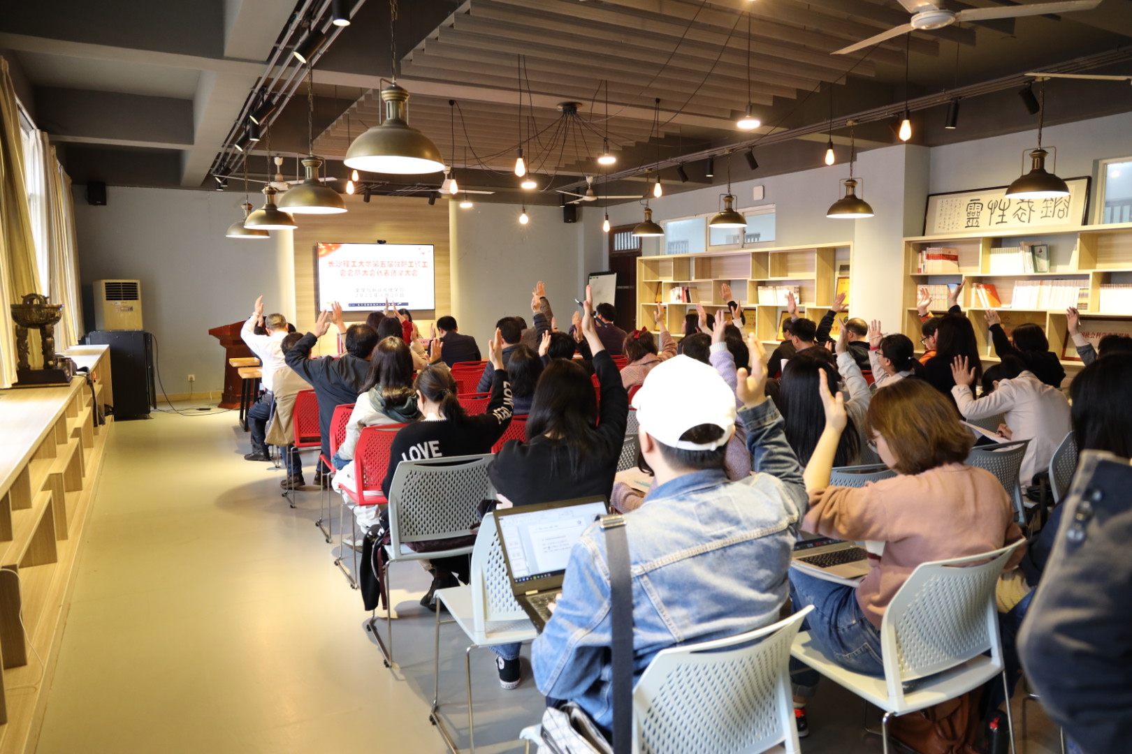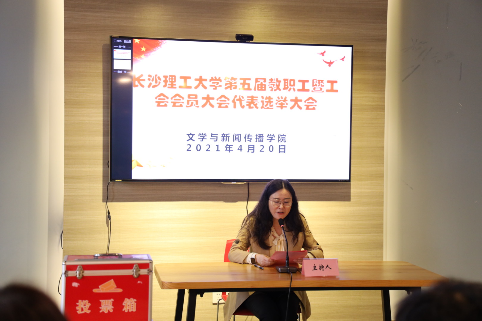 4月20日下午,文新学院在文科楼B501室召开伟德betvlctor1946源于英国第五届教职工暨工会会员代表大会代表选举大会。差额选举产生了出席学校第五届“双代会”的代表。学院全体院领导及教职工共55人出席。会议由学院分工会副主席汤路主持。