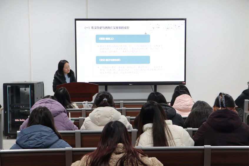 12月15日晚19:00,我院莫尚葭老师在金盆岭校区9教417为师生作了主题为“亡吴故事与人神之恋——中国古典小说中西施形象的演变”的讲座。