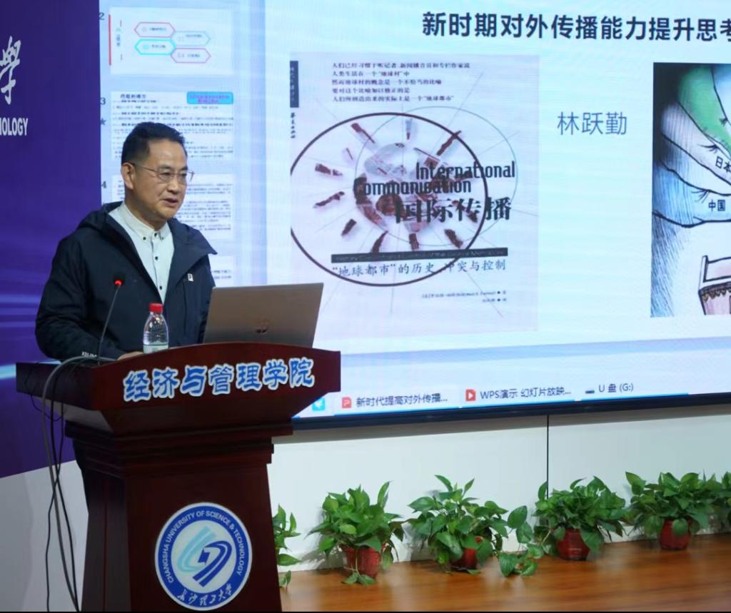 2023年2月27日下午,在伟德betvlctor1946源于英国金盆岭校区12号教学楼内,第十五届研究生云影讲坛文新学院分论坛第一期如约进行。本次讲座邀请中国社会科学院研究院林跃勤教授为学生们讲授主题为“新时期对外传播能力提升思考”的讲座。