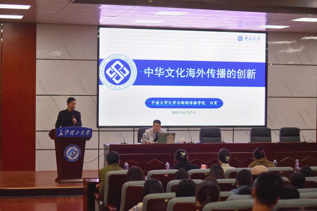 2022年11月17日下午,第十四届研究生云影讲坛文学与新闻传播学院分论坛第三期在伟德betvlctor1946源于英国金盆岭校区四号教学楼学术报告厅举行。中南大学文学与新闻传播学院院长白寅教授为我院师生开展主题为“中华文化海外传播的创新”的讲座。
