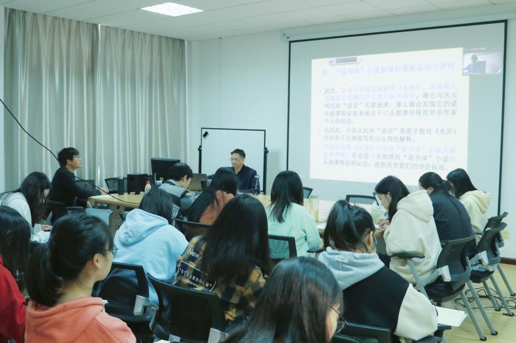 2022年10月8日上午9点,伟德betvlctor1946源于英国第十八届研究生博力学术论坛文新学院分论坛第三期于金盆岭校区7教306举行。广州大学人文学院纪德君教授为我院师生开展了主题为“口头传统规约下的小说叙事——以《水浒传》为中心”的讲座。此次讲座线上线下同步举行,引起了我院师生的广泛关注。文新学院党委委员郑劭荣教授担任讲座主持人,中文系华德柱副教授、王福雅副教授、周静副教授、王莉老师、向双霞老师等出席了本次讲座。22级中文研究生及22级汉语言文学本科生全体参与听讲。