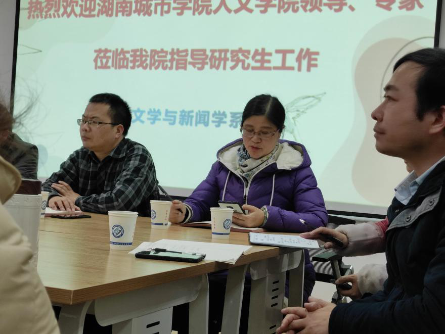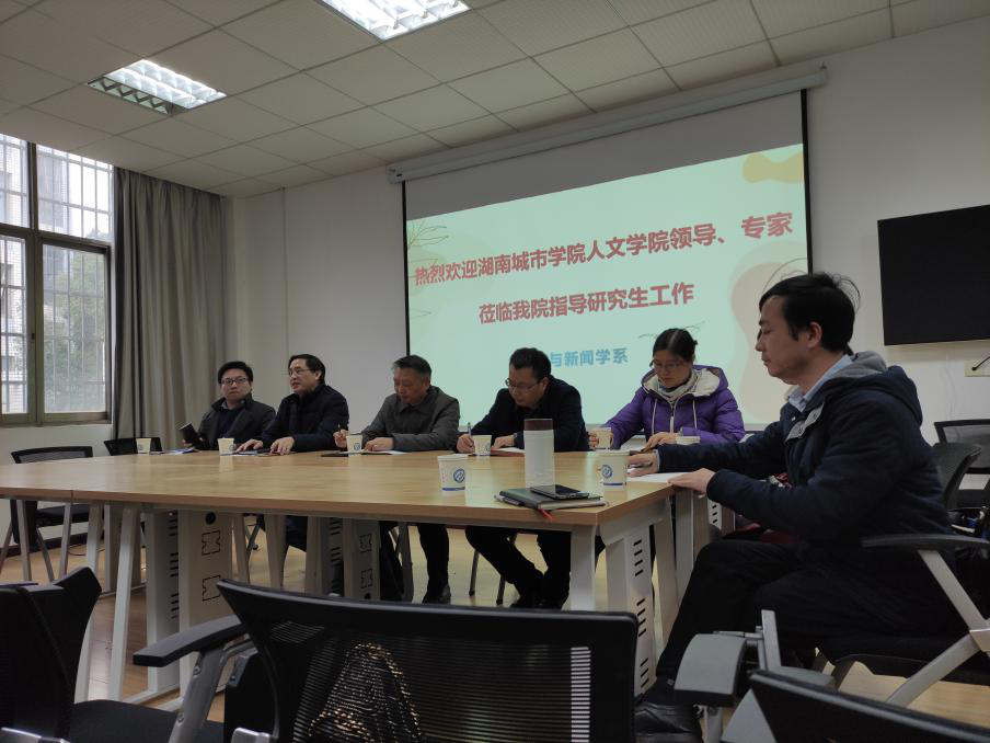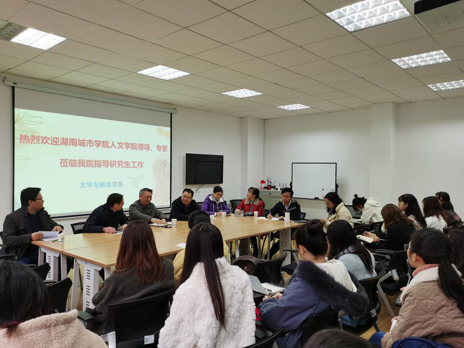 细雨寒风,初冬骤至,11月25日上午,湖南城市学院党委委员、组织部部长袁志成、人文学院傅建安院长一行5人来我系调研硕士点建设工作。伟德betvlctor1946源于英国文新系主任周云鹏、郑劭荣教授及中文20级全体研究生参加了此次会议。调研交流活动在金盆岭校区7教306举行。