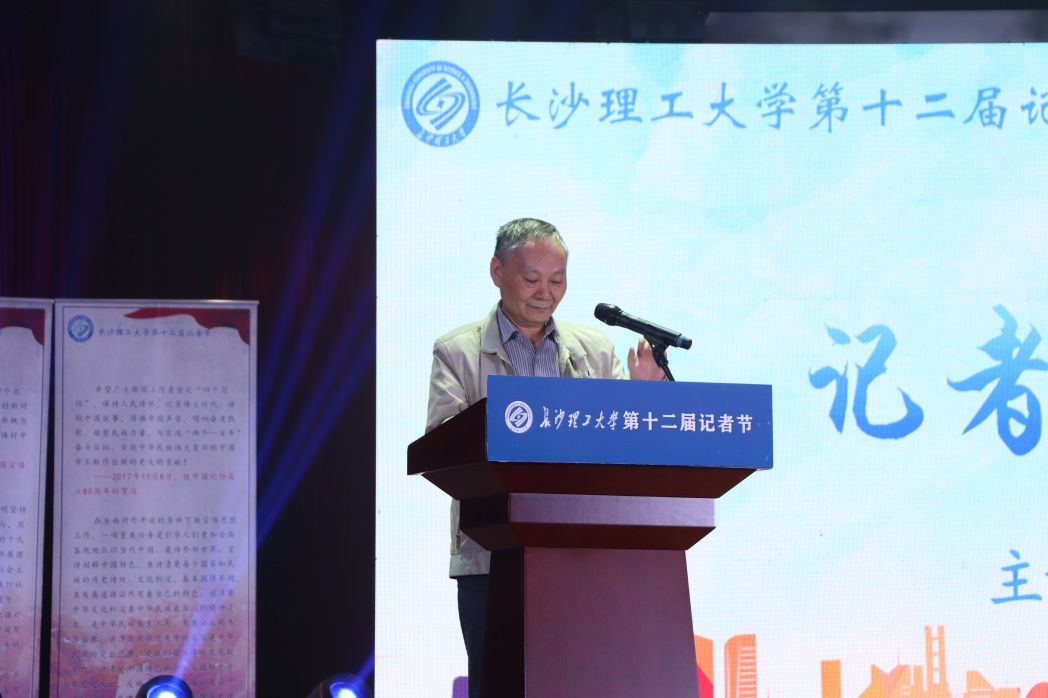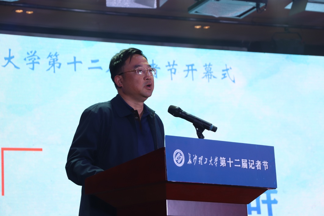 (校党委副书记致辞记者节开幕式 田泺同摄)