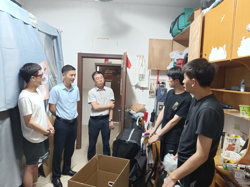 在至诚轩和弘毅轩宿舍,学院领导、老师与毕业生们亲切交谈,详细了解他们的毕业去向、未来规划、以及离校准备情况等等,并叮嘱他们在离校途中务必注意安全,确保平安到家。针对目前暂未就业的学生,学院领导老师也鼓励他们要坚定信心、把握机遇,正确认识自身情况和就业形势,争取早日找到适合自己的工作。