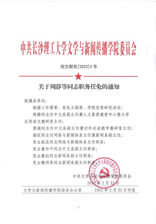 关于周静等同志职务任免的通知