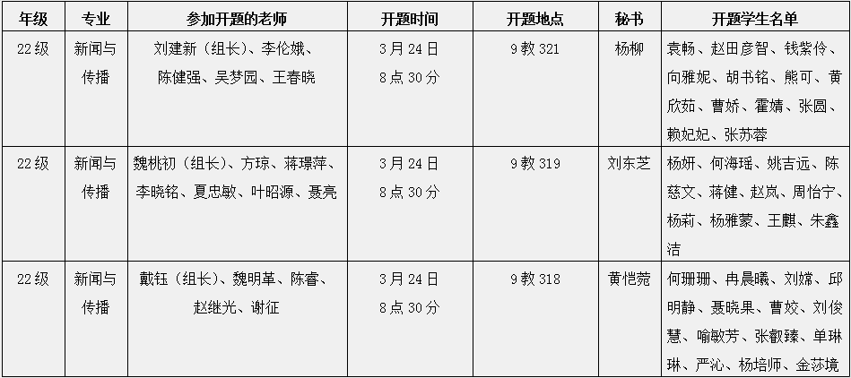 院研究生2022级学位论文开题安排表(新闻与传播)