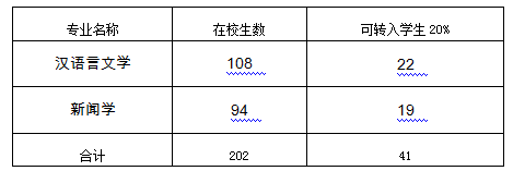 1.申请转入本系汉语言文学专业和新闻学专业的学生均须参加综合考核,考核分笔试和面试,权重比例分别为60%:40%,接受原则按转专业学生综合考核成绩×50%与该生在校已获课程成绩平均绩点×50%之和的总分,从高到低排序,依次择优接收。