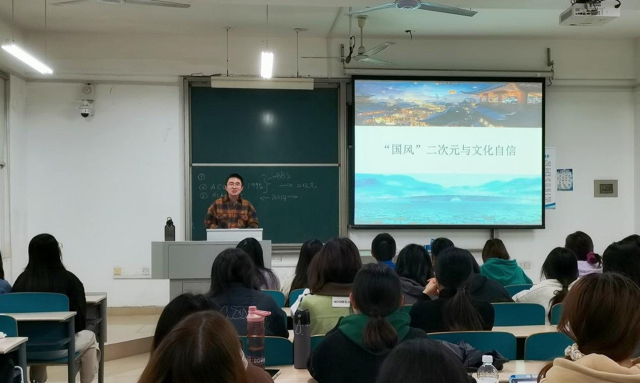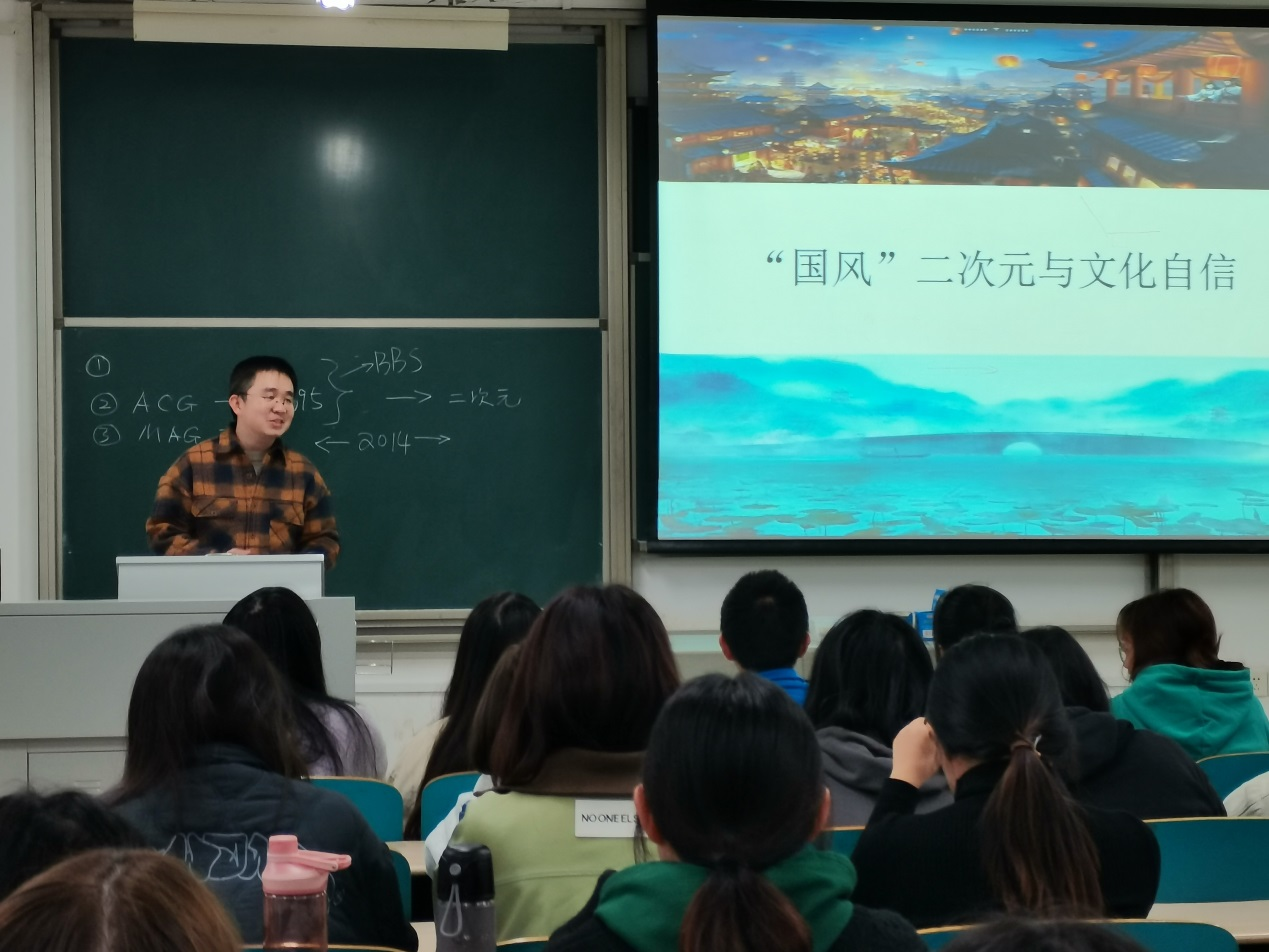 11月18日下午,伟德betvlctor1946源于英国文学与新闻传播学院邓祯博士为2020届新闻学子讲授“‘国风’二次元与文化自信”。