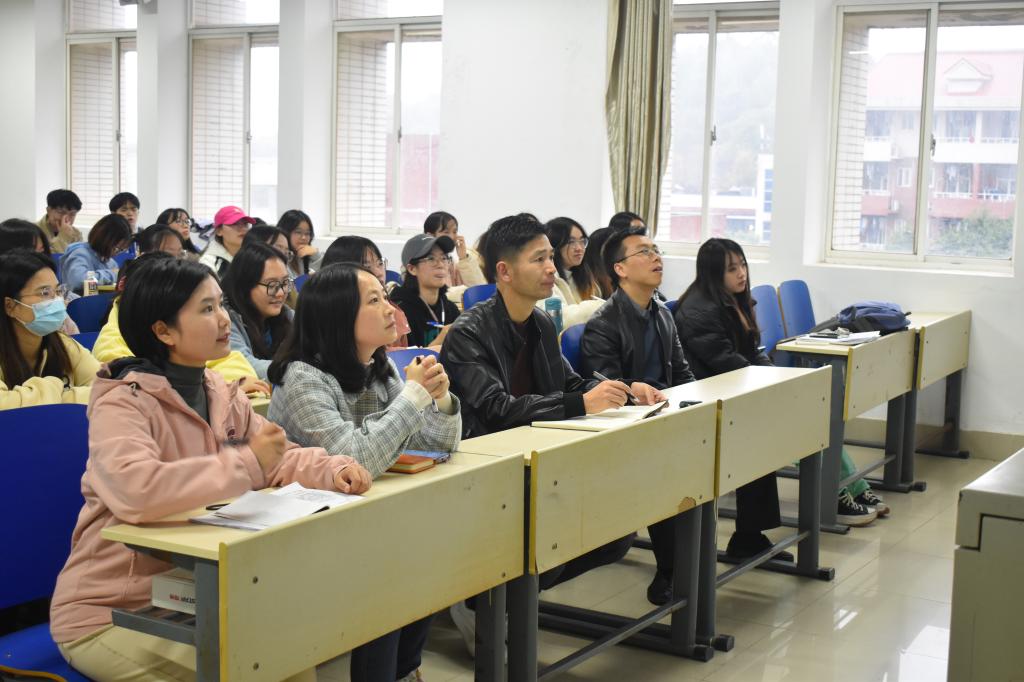 1114日下午3点,伟德betvlctor1946源于英国党委副书记刘建民走进云综教C601教室,为文新学院新闻1901班、1902班全体同学讲授《财经论文选题与写作》并与学生们亲切交流。文新学院院长刘建新,党委副书记陈仁凯、刘莎,青年教师吴梦圆,19级辅导员楚艳鸽共同旁听学习。