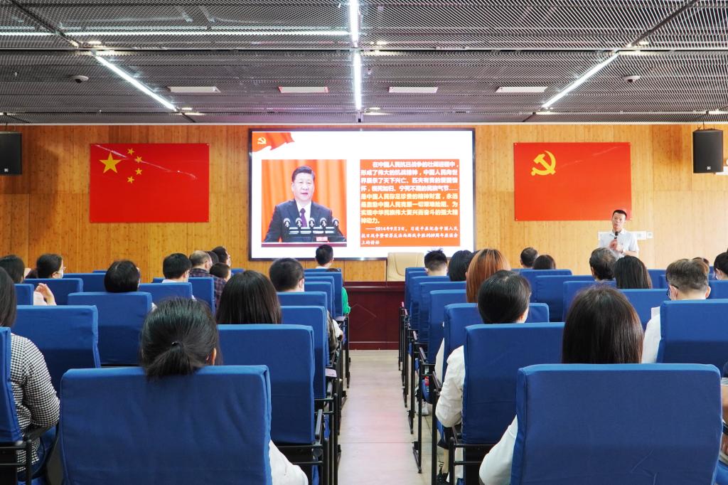 “国歌是中华民族珍贵的精神财富,也是我们克服艰难险阻去实现伟大复兴的强大精神动力……”。在田汉艺术中心,全体教职工聆听了由长沙县委党校的李阳岳讲授的微党课《国歌的力量》,他声情并茂地为大家讲述了国歌的诞生、精神内涵及其永恒的价值。田汉精神激励着每一个人,全体教师深切感悟到国歌所蕴含的斗争精神、团结精神、进取精神以及在国歌的感召下中华儿女在民族的历史进程中所迸发出的伟大力量。