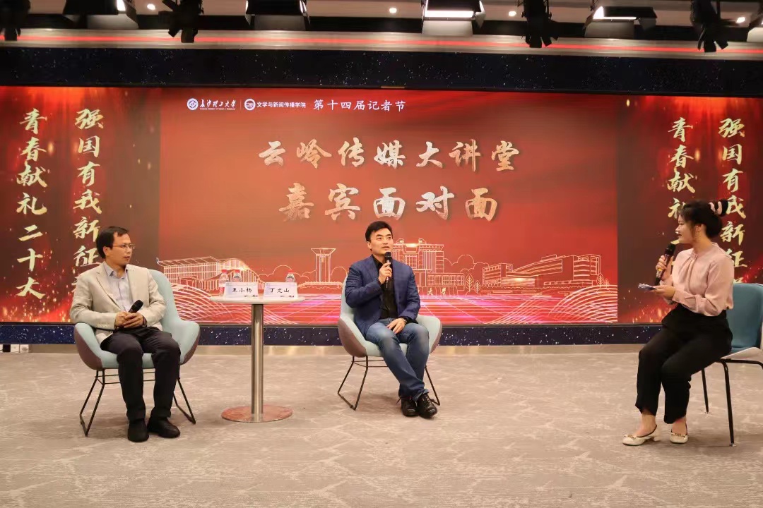 在第23个中国记者节即将到来之际,11月1日下午,学校第十四届记者节开幕式暨云岭传媒大讲堂在云塘校区文科楼举办。副校长蒋璟萍,特邀嘉宾、湖南卫视频道声音形象代言人丁文山,湖南红网新媒体集团编委、理论评论中心主任王小杨,宣传部、教务处、研究生院、校团委等部门负责人和文新学院负责人、师生代表参加活动。
