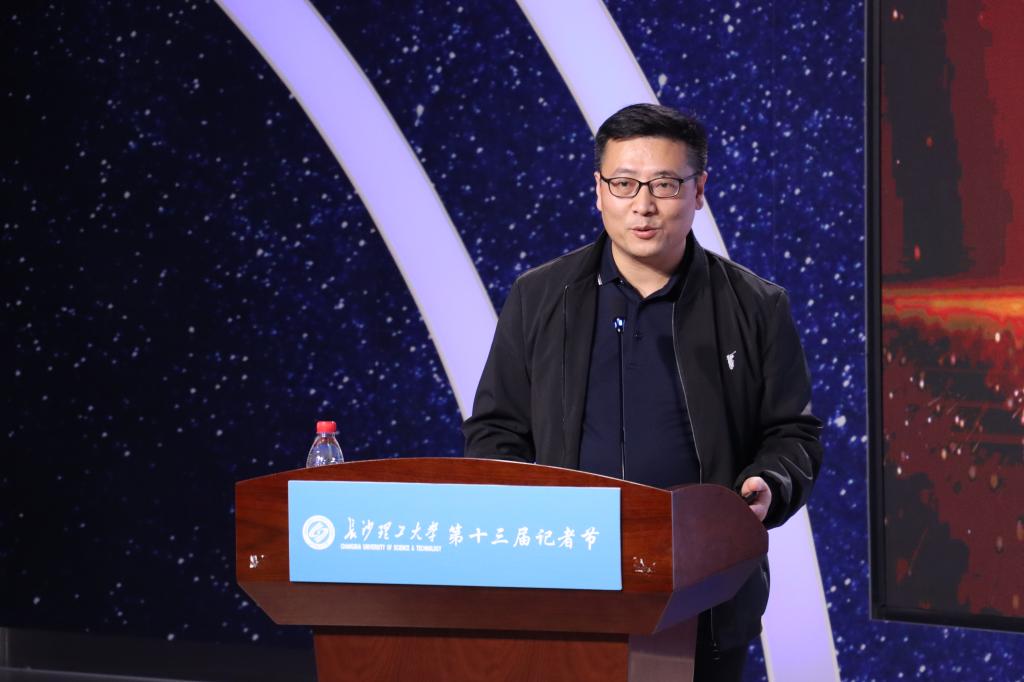 在媒体记者高峰论坛中,今日女报副总编辑、凤网总经理、旅行杂志副总编辑邓魏和湖南日报教育工作室主任、三湘都市报编委黄京,先后从多年媒体从业经验出发进行主题分享,并与同学们进行互动交流。