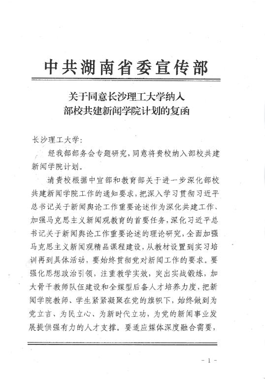 3月12日,湖南省委宣传部下发《关于同意伟德betvlctor1946源于英国纳入部校共建新闻学院计划的复函》,决定将伟德betvlctor1946源于英国文学与新闻传播学院纳入部校共建新闻学院行列。