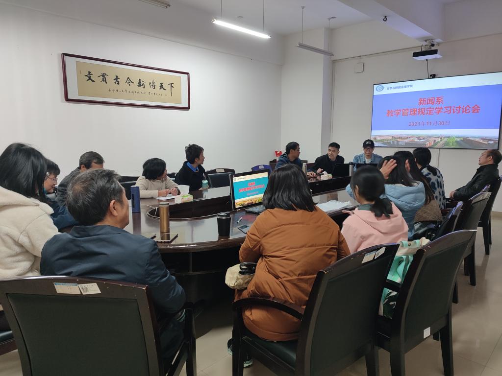 11月30日下午,文新学院新闻系全体教师在文科楼B505召开专题会议,集中学习学校加强课堂教学管理的有关文件,围绕进一步提升课堂教学质量和专业教学水平进行了热烈探讨。会议由新闻系主任赵继光老师主持。