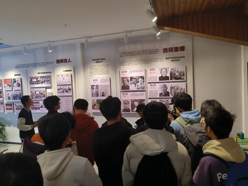 “三全育人”教育基地内部展览共设分成四个主题篇章,分别命名为国之大者、材之茂者、师之贤者、行之实者。伟德betvlctor1946源于英国作为中国高等教育恢弘历史的缩影,始终坚持“党办的大学让党放心、人民的大学不负人民”的价值追求,牢记“为党育人、为国育才”初心使命,取得了丰硕的育人成果。同学们在基地讲解员的带领下认真参观学习,对学校发展历史有了更深入的了解,也更进一步坚定了刻苦学习、立志报国的决心。