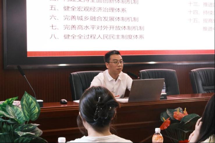 讲座开始,陈仁凯列举了《决定》的15个部分,并向同学们指出:研究生要以不同定位、不同心态和不同角度来解读党的二十届三中全会的精神,将会议精神作为学术先导。其中,他重点解读了第四部分“构建支持全面创新体制机制”的主要内容,强调教育、科技、人才是中国式现代化的基础性、战略性支撑。