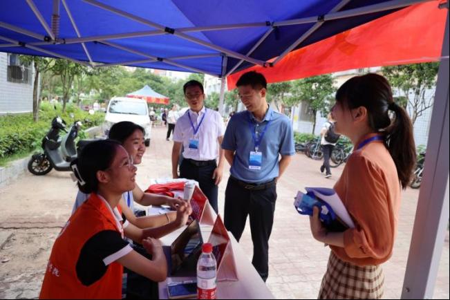 院党委书记陈仁凯、院长刘建新、院党委副书记刘莎以及学生辅导员吴笛和杨雅蒙在报到期间走访各个迎新点,检查新生报到工作情况和完成进度,并探访学生宿舍,关心新生的开学情况和感受,与新生亲切交流。