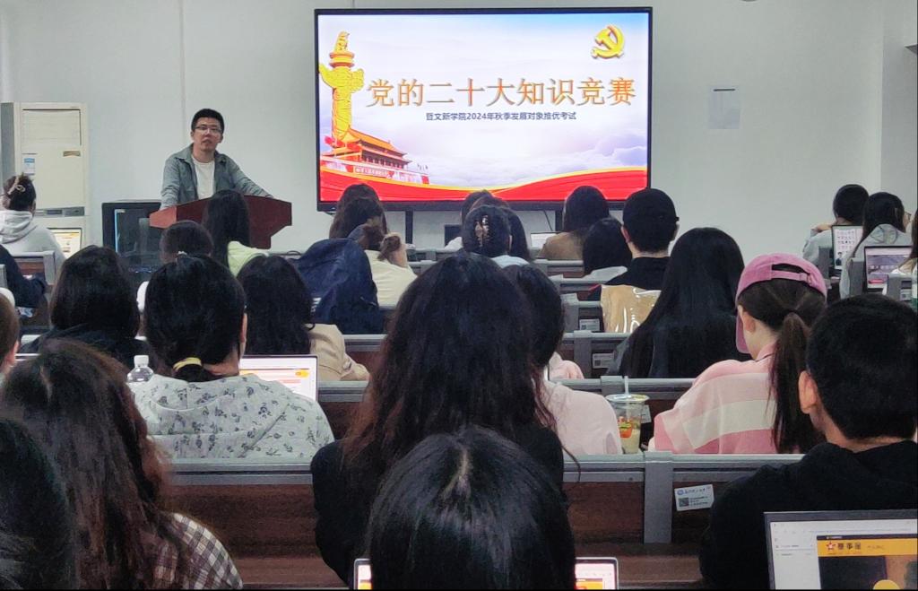 为贯彻落实党的二十大精神,积极探索“党建+互联网”新模式,进一步提升积极分子的理论知识水平,10月16日12时30分,“党的二十大知识竞赛暨文新学院2024年秋季发展对象推优考试”于伟德金盆岭校区九号教学楼417室成功举行。