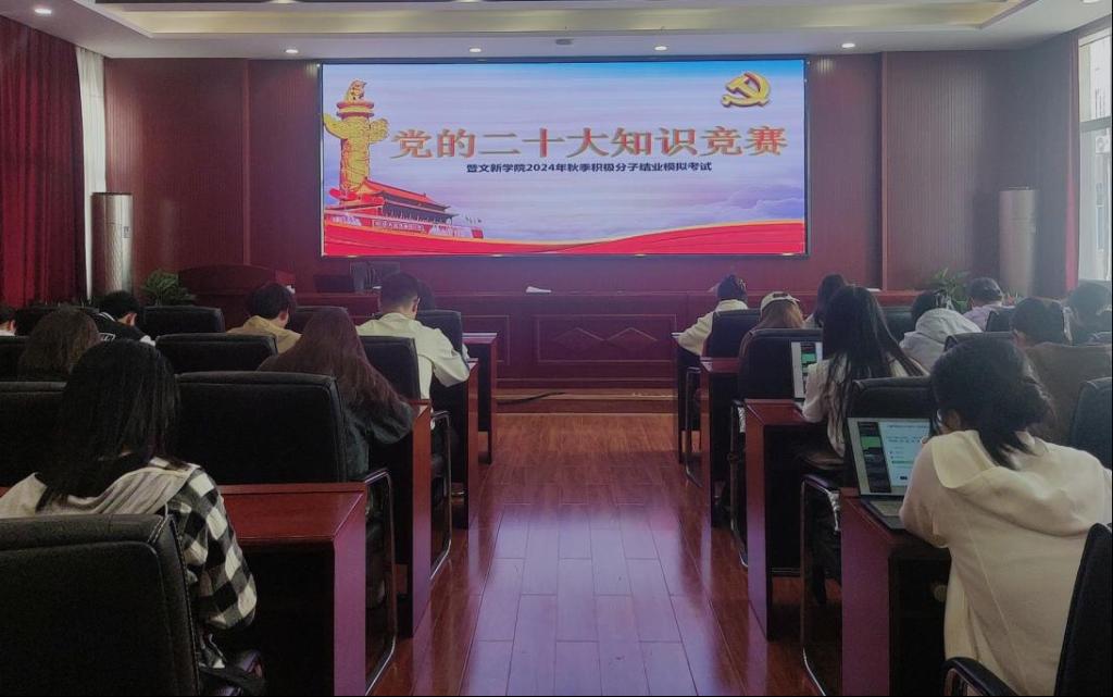 为贯彻落实党的二十大精神,积极探索“党建+互联网”新模式,进一步提升积极分子的理论知识水平,11月12日12时10分,“党的二十大知识竞赛暨文新学院2024年秋季积极分子第一次模拟考试”于伟德金盆岭校区九号教学楼218室成功举行。