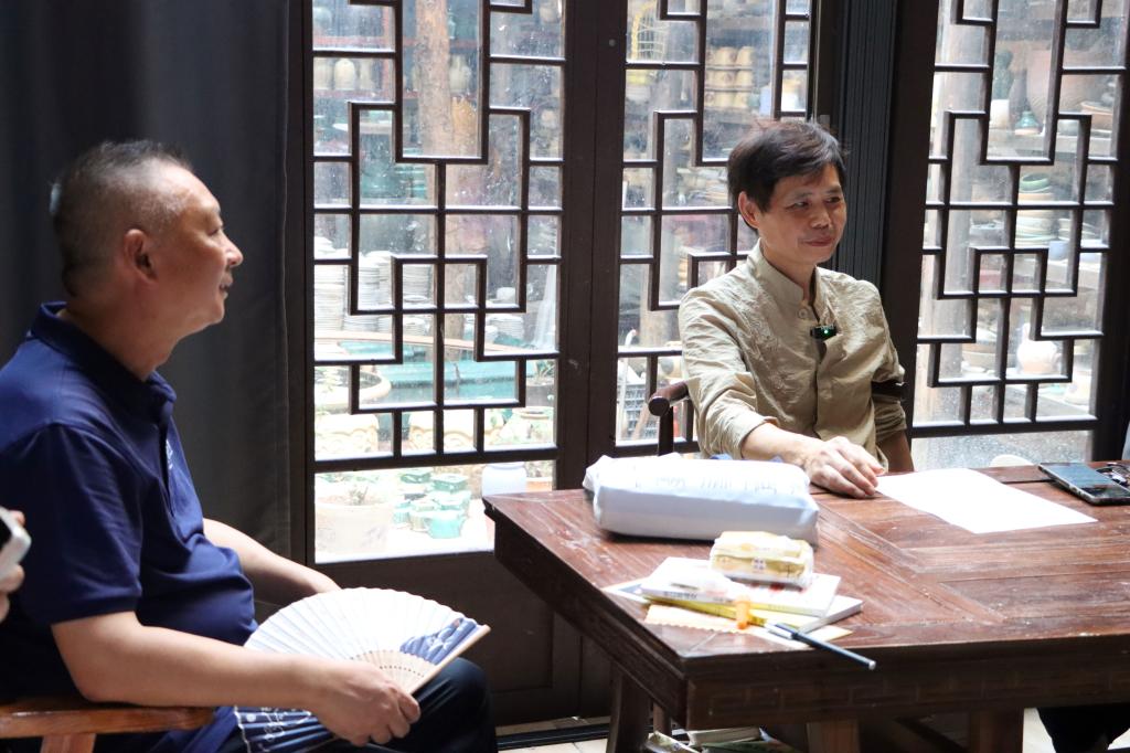 作为我国陶瓷器最早对外出口外贸的重要产地之一,铜官窑在唐代便沿海上丝绸之路走向世界,见证了中外文化的交流与融合。实践团走进位于铜官老街236号的“广华鑫陶艺馆”,与刘志广老师面对面座谈,听他讲述自己数十年与陶共生、与艺相守的故事。