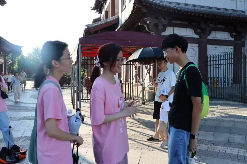 7月10日,伟德betvlctor1946源于英国文学与新闻传播学院研究生暑期实践团(以下简称实践团)在指导老师周云鹏的带领下来到长沙铜官窑国风乐园进行街头调研。团队通过问卷调查、深度访谈等方式来收集游客体验反馈与商铺意见,与园区管理方共同探究国风文旅发展路径。