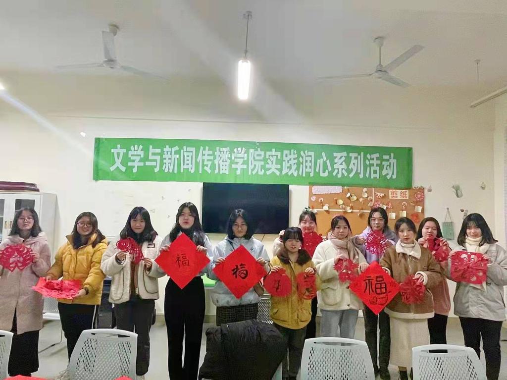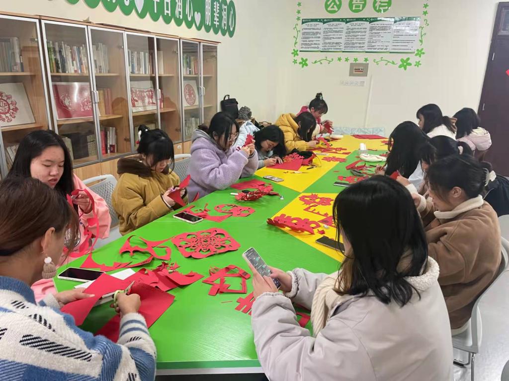 为迎接2022年元旦佳节的到来,弘扬中华优秀传统节日文化,体验非遗剪纸手工技艺,同时舒缓同学们期末面对的压力,2021年12月28日下午,文新学院在云塘校区文科楼B414开展元旦剪纸活动。本次活动由文新学院润心互助团主办,参与活动的人员为文新学院的学生。