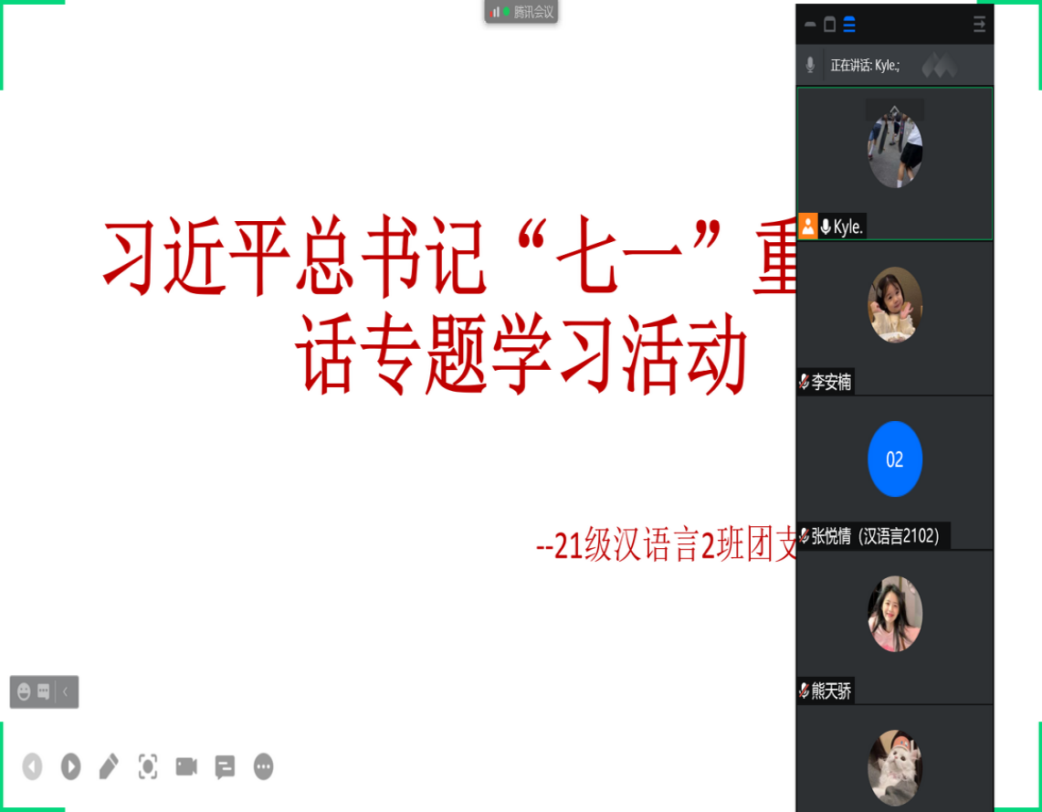 各团支部组织同学集中学习了习近平总书记的重要讲话内容,感悟中国共产党百年历程中不变的初心使命,坚定共产主义理想信念,增强开拓进取的勇气。
