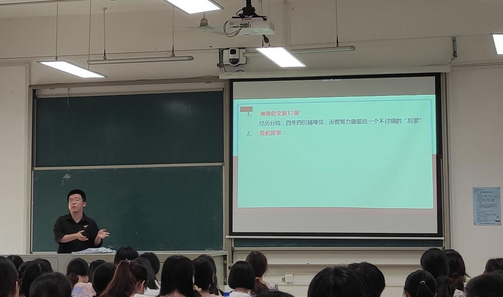 615日下午2点,文新学院于文科教C402室举行2022届本科毕业生就业指导会,由学院就业专干陈鑫宇主讲,全体2018级本科生参加了此次指导会。