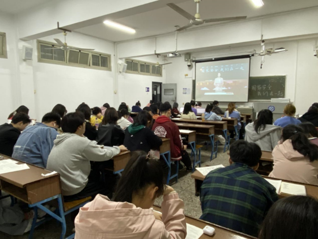 各班班会组织形式多样,汉语言1904班组织同学在班会上分享防诈骗故事及小技巧。20级部分班级组织同学集体观看防诈骗视频,同学们积极发言观后感。