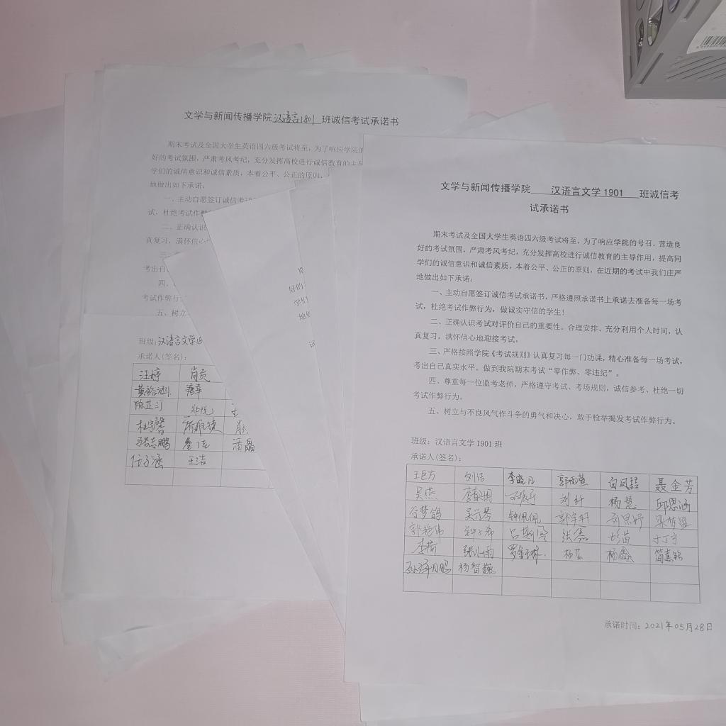 学校明确出台《伟德betvlctor1946源于英国关于“打击在校学生违规助考行为”专项行动实施方案》,班会上,各班强调在高考期间,在校大学生应该维护高考公平,严禁违规助考。其次,期末及四六级考试将近。同学们应该严格遵守考风考纪,不要抱侥幸心理,诚信考试。各班级积极组织学生学习考试违纪条例,每位同学都在班会后签订了诚信考试承诺书。