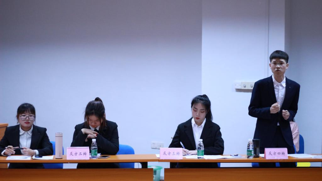 半决赛阶段,参赛队伍为4支,在我院与电气学院的对阵中,从网红传播知识碎片化、崇拜导致粉丝心理、真知需知而能行三个角度论证对知识网红的崇拜让我们离真知越来越远,最终惜败电气学院。