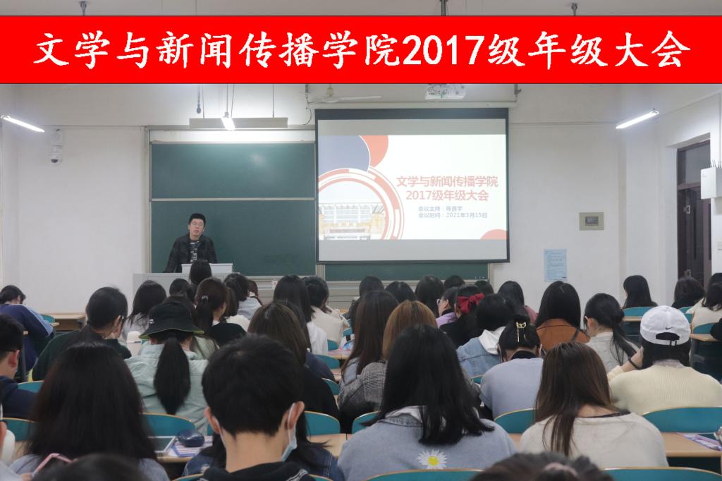 2021年3月15日下午,文学与新闻传播学院春招动员会于文科楼B403召开,党总支书记伍接朝、辅导员陈鑫宇出席,2017级本科毕业生参加了本次大会,会议由陈鑫宇主持。