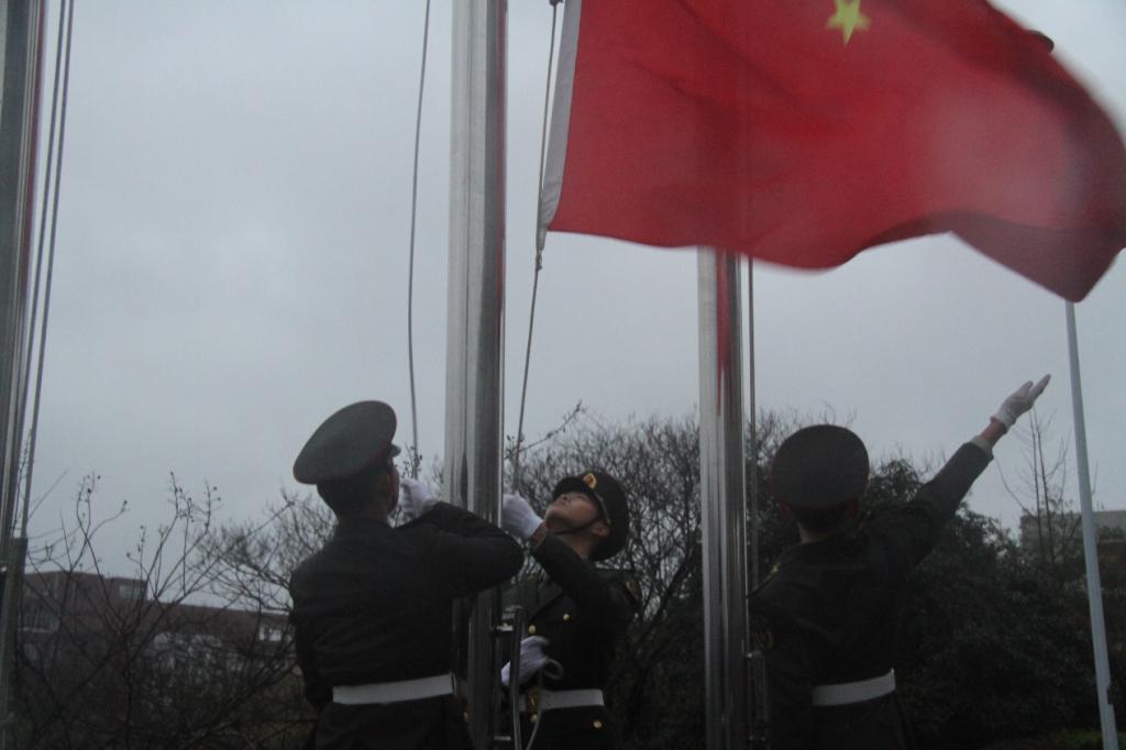 寒风细雨、天蒙蒙亮,同学们早早集合完毕,以昂扬的精神面貌迎接本学期第一升旗仪式。随着“升——国旗”口令后,长理民兵连国旗班护卫着鲜艳的五星红旗入场,他们精神饱满,步伐矫健。伴随着国旗缓缓升起,同学们唱响国歌,行注目礼,庄严肃穆,在国旗下宣誓,“志存高远,坚定信念;热爱祖国,服务人民……”誓词刻进心头,未来的行动一定能落到实处。