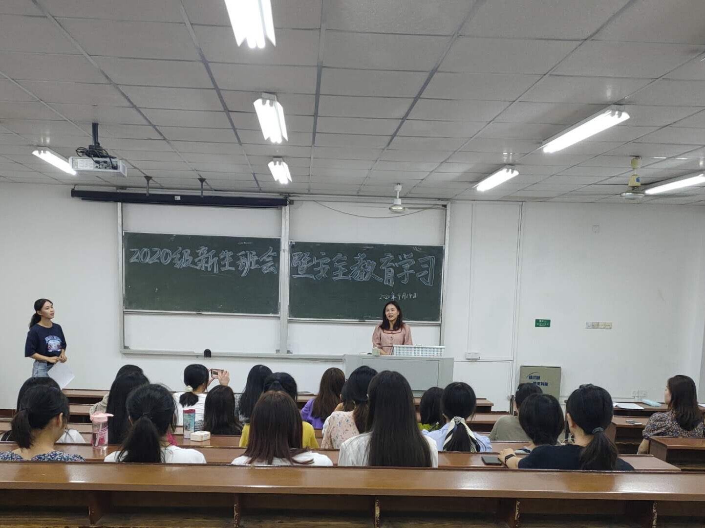 2020年9月14日晚上六点半,伟德betvlctor1946源于英国文新系中文专业召开2020级新生班会暨安全教育学习。辅导员李敏、院研会副主席张媛琳以及2020级新生参加了此次会议。