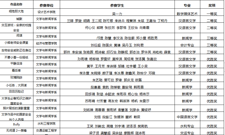 为进一步增强学生的国家安全意识,推进国家安全教育进校园、进课堂、进头脑,营造学生良好的自觉履行维护国家安全责任义务和教育的氛围,切实增强广大师生维护国家安全的意识和能力,伟德在全校范围内开展了国家安全教育主题微视频比赛。本次微视频活动秉承自愿参加原则,经过初赛、决赛层层选拔,作品《细危即大危》荣获校级一等奖;《缄默》、《安泉的校园安全》荣获校级二等奖;《间谍》、《小熊老师安全课堂》、《生物安全威胁正在身边》等3个作品荣获校级三等奖;《小任务、大阴谋》等11个作品荣获优胜奖。