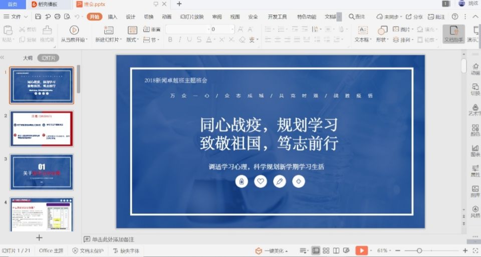 新闻1701班心委积极进行班会组织工作,搜集疫情防控心理资料,如心理疏导10堂课,从规则、自由、自控、习惯等方面入手,组织同学们认真学习,更全面地普及疫情期间心理健康知识。同学们在班会上踊跃发言,并以vlog视频形式分享自己疫情时期的居家生活、学习习惯等。