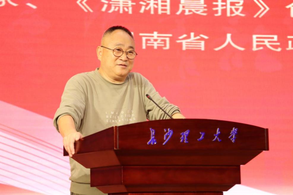 文新学院院长刘建新为本次活动致辞。他着重强调了书籍对于人思维开拓的重要性及学院对阅读推广的重视,特别是以“经典作品分享会”、“金岭读书会”、“中文岭上谈文学品评会”、”传媒绘世会”为代表的“四会”特色育人品牌,搭建起系统化、多维度、参与性强的阅读推广平台,推动阅读成为学生全面成长的重要支点。学院持续推进“道器融通、赛创融汇、文工融合”的“三融”协同育人格局,将阅读作为核心力量贯穿通识教育和专业教学全过程,让书香润泽育人环境、厚植精神沃土。