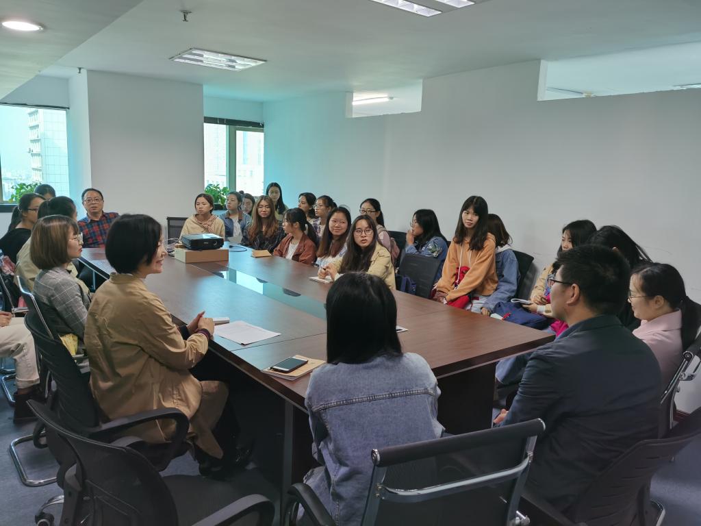 在实训开始之前,外国语学院邓跃平教授与雅瑞思翻译公司总经理叶桂喜、副总经理侯彩云、翻译中心总监李巳荣以及翻译实习相关指导老师进行座谈,就实训工作进行沟通对接。实习生们也参与了此次座谈,认真聆听接下来的实习工作安排和需要注意的事项,并表示对即将进行的翻译实习充满期待。