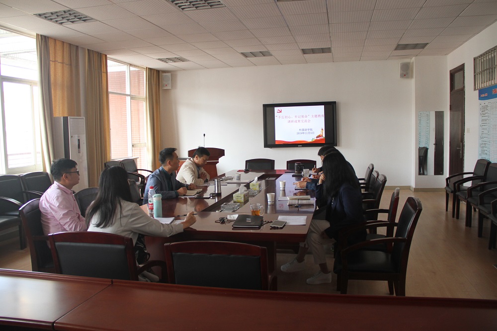 11月5日下午3点,学院“不忘初心、牢记使命”主题教育回头看总结会在文科楼A-603会议室召开,学院党委班子全体成员、各党支部书记参会。党委副书记陈仁凯主持会议,学校主题教育督导组第三组长李争流出席指导。